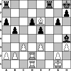 game notation in PGN-format [Event "Winter 2011/12"] [Site "www.myChess.de"] [Date "2011.12.22"] [Round "1"] [White "muetoe"] [Black "Lemmi11"] [ECO "C60"] [WhitemyELO "1782"] [BlackmyELO "1813"] [Result "1/2-1/2"] [TimeControl "10/2592000"] [WhiteDays "064"] [BlackDays "118"] [MyChessNo "78330"] 1. e4 e5 2. Nf3 Nc6 3. Bb5 g6 4. c3 a6 5. Bc4 Bg7 6. d4 d6 7. O-O Nf6 8. d5 Ne7 9. Qe2 O-O 10. Na3 Bd7 11. Bg5 c6 12. dxc6 Bxc6 13. Bxf6 Bxf6 14. Rfd1 b5 15. Bb3 Qd7 16. Rd2 Kg7 17. Rad1 Qg4 18. Bc2 Nc8 19. h3 Qd7 20. Bb3 Qb7 21. Re1 Be7 22. Nc2 f5 23. exf5 Rxf5 24. Ne3 Rf8 25. Nd5 Nb6 26. Nxb6 Qxb6 27. Nd4 Bd7 28. Qe3 Kh8 29. Ne6 Qxe3 30. fxe3 Bxe6 31. Bxe6 Bh4 32. Red1 1/2-1/2 position notation in FEN-format r4r1k/7p/p2pB1p1/1p2p3/7b/2P1P2P/PP1R2P1/3R2K1 - - - 2 32 Captured white pieces: Captured black pieces: Click on a captured piece in order to display the desired move!