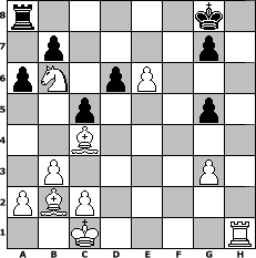 game notation in PGN-format [Event "Albspiele II"] [Site "www.myChess.de"] [Date "2010.01.10"] [Round "1"] [White "paul"] [Black "hape50"] [ECO "C41"] [WhitemyELO "1300"] [BlackmyELO "1311"] [Result "1-0"] [TimeControl "10/2592000"] [WhiteDays "28"] [BlackDays "30"] [MyChessNo "62267"] 1. e4 e5 2. Nf3 d6 3. Nc3 a6 4. b3 Nf6 5. d4 h6 6. d5 c6 7. Bc4 c5 8. Bb2 Be7 9. Qe2 Nbd7 10. h3 Nh5 11. g3 O-O 12. Nd2 Nb6 13. Qxh5 f5 14. O-O-O Rf6 15. Rhf1 fxe4 16. Ndxe4 Rf5 17. Qe2 Bd7 18. f4 Rf7 19. fxe5 Rxf1 20. Rxf1 Bxh3 21. Rh1 Qd7 22. e6 Bxe6 23. dxe6 Qc8 24. Nd5 Qd8 25. Qg4 Bg5+ 26. Nxg5 Qxg5+ 27. Qxg5 hxg5 28. Nxb6 1-0 position notation in FEN-format r5k1/1p4p1/pN1pP3/2p3p1/2B5/1P4P1/PBP5/2K4R - - - 0 28 Captured white pieces: Captured black pieces: Click on a captured piece in order to display the desired move!
