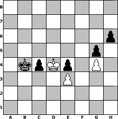 game notation in PGN-format [Event "Zweitausendachtdaserste"] [Site "www.myChess.de"] [Date "2008.01.01"] [Round "1"] [White "Helmut48"] [Black "Andylein1989"] [ECO "C44"] [WhitemyELO "1393"] [BlackmyELO "1412"] [Result "0-1"] [TimeControl "10/864000"] [WhiteDays "10"] [BlackDays "10"] [MyChessNo "41169"] 1. e4 e5 2. Nf3 Nc6 3. a3 Bc5 4. c3 d6 5. h3 a5 6. Bb5 Bd7 7. Bxc6 Bxc6 8. d3 h6 9. O-O Qf6 10. Re1 O-O-O 11. d4 exd4 12. cxd4 Bb6 13. Be3 Ne7 14. Re2 Ng6 15. d5 Bb5 16. Rd2 Bxe3 17. fxe3 Nh4 18. Nxh4 Qxh4 19. Qg4+ Qxg4 20. hxg4 Bd7 21. Rf2 f6 22. Rf4 Rhf8 23. Nc3 g5 24. Rf2 Bxg4 25. Raf1 Bh5 26. Rxf6 Rxf6 27. Rxf6 Rh8 28. Kf2 Kd7 29. Kg1 Ke7 30. Rf2 Bg6 31. g4 c6 32. dxc6 bxc6 33. Kg2 Re8 34. Kg3 Kd7 35. Re2 Bxe4 36. Nxe4 Rxe4 37. Kf3 d5 38. Rd2 Ke6 39. Rd4 Ke5 40. Rxe4+ dxe4+ 41. Ke2 c5 42. b3 Kd5 43. Kd2 c4 44. b4 axb4 45. axb4 Kc6 46. Kc3 Kb5 47. Kd4 Kxb4 0-1 position notation in FEN-format 8/8/7p/6p1/1kpKp1P1/4P3/8/8 - - - 0 48 Captured white pieces: Captured black pieces: Click on a captured piece in order to display the desired move!