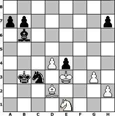 game notation in PGN-format [Event "nur so"] [Site "www.myChess.de"] [Date "2007.08.15"] [Round "2"] [White "kischok46"] [Black "Phantasos"] [ECO "C02"] [WhitemyELO "2019"] [BlackmyELO "2146"] [Result "0-1"] [TimeControl "10/864000"] [WhiteDays "50"] [BlackDays "34"] [MyChessNo "37375"] 1. e4 e6 2. d4 d5 3. e5 c5 4. Nf3 cxd4 5. Qxd4 Nc6 6. Qe3 d4 7. Qf4 Nge7 8. Bd3 Nd5 9. Qe4 Ndb4 10. Bc4 Na5 11. Be2 Nac6 12. a3 Qd5 13. Qxd5 Nxd5 14. O-O f6 15. exf6 gxf6 16. Rd1 e5 17. c3 Bc5 18. b4 Bb6 19. b5 Na5 20. cxd4 e4 21. Nfd2 f5 22. Nc4 Nxc4 23. Bxc4 Be6 24. a4 Rc8 25. Na3 Rg8 26. g3 Kd7 27. Bb2 f4 28. Rac1 fxg3 29. fxg3 Ba5 30. Bb3 Ne3 31. Bxe6+ Kxe6 32. Rxc8 Rxc8 33. Rc1 Rxc1+ 34. Bxc1 Nd1 35. Kf1 Kd5 36. Nc2 Kc4 37. Ke2 Nc3+ 38. Ke3 Kb3 39. Ne1 Nb1 40. Kf2 Kxa4 41. b6 Bxb6 42. Ke3 Nc3 43. Bd2 Kb3 0-1 position notation in FEN-format 8/pp5p/1b6/8/3Pp3/1kn1K1P1/3B3P/4N3 - - - 4 44 Captured white pieces: Captured black pieces: Click on a captured piece in order to display the desired move!