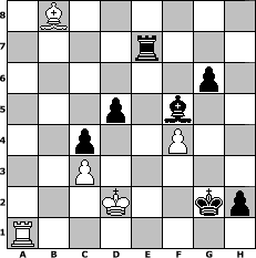 game notation in PGN-format [Event "Nach dem Weltuntergang 2012"] [Site "www.myChess.de"] [Date "2012.12.27"] [Round "1"] [White "Joschi"] [Black "sprinterde"] [ECO "C18"] [WhitemyELO "1562"] [BlackmyELO "1675"] [Result "0-1"] [TimeControl "10/864000"] [WhiteDays "09"] [BlackDays "10"] [MyChessNo "85682"] 1. e4 e6 2. d4 d5 3. Nc3 Bb4 4. e5 c5 5. a3 Bxc3+ 6. bxc3 Qb6 7. Be3 c4 8. Qg4 g6 9. Nf3 h5 10. Qg3 Qb2 11. Rc1 Qxc3+ 12. Bd2 Qxa3 13. Ng5 Qxg3 14. hxg3 Nc6 15. c3 f6 16. exf6 Nxf6 17. Be2 e5 18. dxe5 Nxe5 19. f4 Nf7 20. Nf3 Ne4 21. Nd4 Nxg3 22. Rh4 Nxe2 23. Kxe2 Nd6 24. Rch1 O-O 25. Bc1 Nf5 26. Nxf5 Bxf5 27. Ba3 Rfe8+ 28. Kd2 a5 29. g3 b5 30. Bd6 a4 31. Be5 Bg4 32. Ra1 Kf7 33. Rhh1 Ra6 34. Rhb1 Bd7 35. Rb4 Ke6 36. Ke3 a3 37. Kd4 a2 38. Ke3 Rea8 39. Kd2 Kf5 40. Ke3 Ra3 41. Rb2 Bc6 42. Kd2 Kg4 43. Bd6 R3a4 44. Be5 Kf3 45. Kc2 Bd7 46. Kd2 Bf5 47. Rxb5 R8a5 48. Rb2 Kxg3 49. Ke3 h4 50. Bc7 Ra7 51. Bb8 Re7+ 52. Kd2 h3 53. Rbxa2 Rxa2+ 54. Rxa2 h2 55. Ra1 Kg2 0-1 position notation in FEN-format 1B6/4r3/6p1/3p1b2/2p2P2/2P5/3K2kp/R7 - - - 2 56 Captured white pieces: Captured black pieces: Click on a captured piece in order to display the desired move!