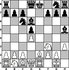 game notation in PGN-format [Event "Anti Fritz8 Turnier"] [Site "www.myChess.de"] [Date "2006.05.02"] [Round "1"] [White "Andylein1989"] [Black "blotto"] [ECO "C00"] [WhitemyELO "1578"] [BlackmyELO "1582"] [Result "1-0"] [TimeControl "10/864000"] [WhiteDays "05"] [BlackDays "00"] [MyChessNo "25085"] 1. e4 e6 2. Nf3 d5 3. exd5 exd5 4. d4 Bg4 5. Be2 Nc6 6. h3 Bh5 7. O-O Bd6 8. Re1 1-0 position notation in FEN-format r2qk1nr/ppp2ppp/2nb4/3p3b/3P4/5N1P/PPP1BPP1/RNBQR1K1 - kq - 4 8 Captured white pieces: Captured black pieces: Click on a captured piece in order to display the desired move!