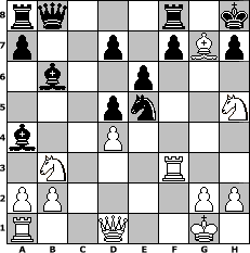 game notation in PGN-format [Event "Rechnerfrei B"] [Site "www.myChess.de"] [Date "2010.02.07"] [Round "1"] [White "espero"] [Black "rgHD"] [ECO "B02"] [WhitemyELO "1773"] [BlackmyELO "1611"] [Result "1-0"] [TimeControl "10/1728000"] [WhiteDays "40"] [BlackDays "04"] [MyChessNo "62992"] 1. e4 Nf6 2. e5 Nd5 3. c4 Nb6 4. c5 Nd5 5. Nc3 c6 6. d4 b6 7. Bc4 e6 8. Bxd5 cxd5 9. cxb6 Qxb6 10. Nge2 Bb4 11. O-O O-O 12. Be3 Ba6 13. f4 Nc6 14. Rf3 Ne7 15. Ng3 Ba5 16. Na4 Qb8 17. Nc5 Bb5 18. f5 Bb6 19. Nb3 Ba4 20. f6 Ng6 21. fxg7 Kxg7 22. Nh5+ Kh8 23. Bh6 Nxe5 24. Bg7+ 1-0 position notation in FEN-format rq3r1k/p2p1pBp/1b2p3/3pn2N/b2P4/1N3R2/PP4PP/R2Q2K1 - - - 1 24 Captured white pieces: ![]() ![]() ![]() ![]() ![]() ![]() ![]() ![]() ![]() ![]() ![]() ![]() ![]() ![]() ![]() Captured black pieces: ![]() ![]() ![]() ![]() ![]() ![]() ![]() ![]() ![]() ![]() ![]() ![]() ![]() ![]() ![]() Click on a captured piece in order to display the desired move!