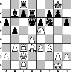 game notation in PGN-format [Event "?"] [Site "www.myChess.de"] [Date "2025.10.04"] [Round "?"] [White "Campino1986"] [Black "peter58"] [ECO "D00"] [WhitemyELO "1558"] [BlackmyELO "1526"] [Result "1/2-1/2"] [TimeControl "10/2592000"] [WhiteDays "81"] [BlackDays "89"] [MyChessNo "133699"] 1. d4 d5 2. e3 Nf6 3. Nf3 e6 4. Be2 Bd6 5. O-O O-O 6. Nc3 Nc6 7. Nb5 Be7 8. c4 dxc4 9. Bxc4 b6 10. b3 Bb7 11. Ba3 a6 12. Bxe7 Nxe7 13. Nc3 b5 14. Bd3 h6 15. Ne5 Ned5 16. Rc1 Nxc3 17. Rxc3 Rc8 18. Qd2 Qd5 19. f3 Qd6 20. Rfc1 Rfe8 21. Qc2 Re7 22. Nc6 Rd7 23. Ne5 1/2-1/2 position notation in FEN-format 2r3k1/1bpr1pp1/p2qpn1p/1p2N3/3P4/1PRBPP2/P1Q3PP/2R3K1 - - - 8 23 Captured white pieces: Captured black pieces: Click on a captured piece in order to display the desired move!