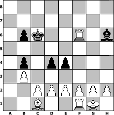 game notation in PGN-format [Event "f"] [Site "www.myChess.de"] [Date "2005.12.25"] [Round "1"] [White "Whiskey40"] [Black "stierdame1965"] [ECO "C41"] [WhitemyELO "1522"] [BlackmyELO "925"] [Result "1-0"] [TimeControl "10/864000"] [WhiteDays "10"] [BlackDays "10"] [MyChessNo "21147"] 1. e4 e5 2. Nf3 d6 3. Bb5+ c6 4. Ba4 b5 5. Bb3 c5 6. Bd5 Ne7 7. Ng5 f6 8. Nf7 Qd7 9. Nxh8 Nxd5 10. exd5 Bb7 11. Qh5+ g6 12. Nxg6 hxg6 13. Qxg6+ Qf7 14. Qxf7+ Kxf7 15. Nc3 b4 16. Nb5 Bxd5 17. Nc7 Nd7 18. Nxd5 Ke6 19. Nc7+ Ke7 20. Nxa8 Bh6 21. a3 Nb6 22. Nxb6 axb6 23. axb4 cxb4 24. b3 d5 25. O-O d4 26. Ra7+ Kd6 27. Rb7 Kc6 28. Rf7 e4 29. Rxf6+ 1-0 position notation in FEN-format 8/8/1pk2R1b/8/1p1pp3/1P6/2PPPPPP/2B2RK1 - - - 0 29 Captured white pieces: Captured black pieces: Click on a captured piece in order to display the desired move!