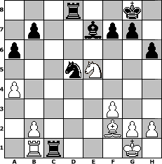 game notation in PGN-format [Event "Sizialianisch"] [Site "www.myChess.de"] [Date "2007.06.22"] [Round "1"] [White "Joschi"] [Black "Andylein1989"] [ECO "B90"] [WhitemyELO "1621"] [BlackmyELO "1536"] [Result "1/2-1/2"] [TimeControl "10/864000"] [WhiteDays "27"] [BlackDays "25"] [MyChessNo "35822"] 1. e4 c5 2. Nf3 d6 3. d4 cxd4 4. Nxd4 Nf6 5. Nc3 a6 6. a4 Nc6 7. Be2 h6 8. Be3 e5 9. Nb3 Be6 10. Nd2 Be7 11. O-O O-O 12. f3 Nb4 13. Bc4 Bxc4 14. Nxc4 d5 15. exd5 Nfxd5 16. Nxd5 Qxd5 17. Qxd5 Nxd5 18. Bf2 Rac8 19. Nxe5 Rxc2 20. Rab1 Rd8 21. Rfc1 Rxc1+ 1/2-1/2 position notation in FEN-format 3r2k1/1p2bpp1/p6p/3nN3/P7/5P2/1P3BPP/1Rr3K1 - - - 0 22 Captured white pieces: ![]() ![]() ![]() ![]() ![]() ![]() ![]() ![]() ![]() ![]() ![]() ![]() ![]() ![]() ![]() Captured black pieces: ![]() ![]() ![]() ![]() ![]() ![]() ![]() ![]() ![]() ![]() ![]() ![]() ![]() ![]() ![]() Click on a captured piece in order to display the desired move!