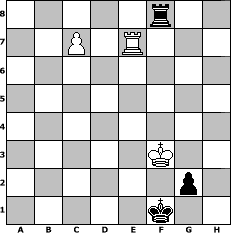 game notation in PGN-format [Event "Aprilwetterturnier"] [Site "www.myChess.de"] [Date "2016.06.04"] [Round "1"] [White "Schefsche"] [Black "muellerh"] [ECO "C24"] [WhitemyELO "1428"] [BlackmyELO "1485"] [Result "0-1"] [TimeControl "10/864000"] [WhiteDays "50"] [BlackDays "62"] [MyChessNo "103763"] 1. e4 e5 2. Bc4 Nf6 3. d3 c6 4. Bg5 Be7 5. Bxf6 Bxf6 6. Nc3 a5 7. a4 b6 8. Nf3 Bb7 9. O-O O-O 10. d4 exd4 11. Nxd4 c5 12. Ndb5 Be5 13. Bd5 Bxd5 14. Qxd5 Nc6 15. Rad1 Re8 16. Qxd7 Qxd7 17. Rxd7 Bxc3 18. bxc3 Rxe4 19. Nc7 Rd8 20. Rxd8+ Nxd8 21. Rd1 Nc6 22. f3 Re7 23. Nd5 Rb7 24. Kf2 f6 25. Re1 Ne5 26. Re4 b5 27. f4 Ng6 28. f5 Ne5 29. g4 Kf7 30. h4 g6 31. fxg6+ hxg6 32. g5 fxg5 33. Rxe5 gxh4 34. Nf4 Kf6 35. Rxc5 bxa4 36. Rxa5 Rb2 37. Rxa4 Rxc2+ 38. Ne2 g5 39. Ra6+ Kf5 40. Ke3 Kg4 41. Kd3 Rb2 42. c4 Kf3 43. c5 h3 44. Ng1+ Kg2 45. Nxh3 Kxh3 46. c6 Rb1 47. Kc2 Rb8 48. c7 Rc8 49. Rh6+ Kg3 50. Rh7 g4 51. Kd2 Kf2 52. Rf7+ Kg2 53. Ke2 g3 54. Rh7 Re8+ 55. Kd2 Kg1 56. Re7 Rc8 57. Ke2 g2 58. Rh7 Re8+ 59. Kf3 Rf8+ 60. Ke2 Re8+ 61. Kf3 Kf1 62. Re7 Rf8+ 0-1 position notation in FEN-format 5r2/2P1R3/8/8/8/5K2/6p1/5k2 - - - 10 63 Captured white pieces: Captured black pieces: Click on a captured piece in order to display the desired move!