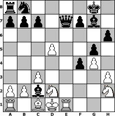 game notation in PGN-format [Event "8. Wikinger-Klubmeisterschaft"] [Site "www.myChess.de"] [Date "2012.08.01"] [Round "1"] [White "Caligula"] [Black "ElisabethPeters"] [ECO "C37"] [WhitemyELO "1412"] [BlackmyELO "1728"] [Result "0-1"] [TimeControl "10/1728000"] [WhiteDays "20"] [BlackDays "20"] [MyChessNo "83079"] 1. e4 e5 2. f4 exf4 3. Nf3 g5 4. h3 Nf6 5. d3 Nh5 6. Be2 Bg7 7. c3 Ng3 8. Rg1 d5 9. exd5 O-O 10. Nbd2 h6 11. Nh2 Re8 12. Kf2 Rxe2+ 13. Qxe2 Nxe2 14. Kxe2 Bf5 15. g4 Qe7+ 16. Kd1 Bxd3 17. Re1 Bc2+ 0-1 position notation in FEN-format rn4k1/ppp1qpb1/7p/3P2p1/5pP1/2P4P/PPbN3N/R1BKR3 - - - 2 18 Captured white pieces: ![]() ![]() ![]() ![]() ![]() ![]() ![]() ![]() ![]() ![]() ![]() ![]() ![]() ![]() ![]() Captured black pieces: ![]() ![]() ![]() ![]() ![]() ![]() ![]() ![]() ![]() ![]() ![]() ![]() ![]() ![]() ![]() Click on a captured piece in order to display the desired move!