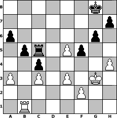 game notation in PGN-format [Event "Pilsfan`s Begrüssungsturnier"] [Site "www.myChess.de"] [Date "2020.05.26"] [Round "1"] [White "lotchi"] [Black "Seneca"] [ECO "A41"] [WhitemyELO "1245"] [BlackmyELO "1518"] [Result "1-0"] [TimeControl "10/1728000"] [WhiteDays "20"] [BlackDays "00"] [MyChessNo "118414"] 1. d4 d6 2. Nf3 Nf6 3. Nc3 g6 4. Bg5 Bg7 5. e3 c6 6. Bxf6 Bxf6 7. Bd3 a6 8. O-O O-O 9. a3 b5 10. Qd2 Bb7 11. h3 Nd7 12. b4 c5 13. dxc5 Bxf3 14. gxf3 dxc5 15. f4 c4 16. Be4 Ra7 17. Bc6 Bxc3 18. Qxc3 Qc7 19. Bxd7 Qxd7 20. Kh2 Qe6 21. Rfd1 Rd7 22. Rxd7 Qxd7 23. Qd4 Qc7 24. c3 Rd8 25. Qc5 Qxc5 26. bxc5 Rc8 27. Rb1 Rxc5 28. Kg3 f5 29. h4 e5 30. fxe5 1-0 position notation in FEN-format 6k1/7p/p5p1/1pr1Pp2/2p4P/P1P1P1K1/5P2/1R6 - - - 0 30 Captured white pieces: Captured black pieces: Click on a captured piece in order to display the desired move!