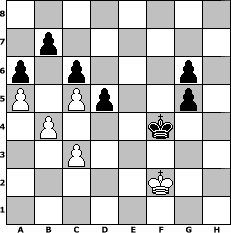 game notation in PGN-format [Event "Godzilla Open 1"] [Site "www.myChess.de"] [Date "2013.06.17"] [Round "1"] [White "Wulfen49"] [Black "FrankB"] [ECO "C00"] [WhitemyELO "1296"] [BlackmyELO "1605"] [Result "0-1"] [TimeControl "10/2592000"] [WhiteDays "29"] [BlackDays "30"] [MyChessNo "88817"] 1. e4 e6 2. Nf3 d5 3. exd5 exd5 4. d4 Bd6 5. Nc3 Ne7 6. Bb5+ c6 7. Be2 Bf5 8. O-O O-O 9. Re1 Re8 10. Bd3 Qd7 11. Ne5 Qc8 12. Nf3 f6 13. Bxf5 Qxf5 14. Nh4 Qd7 15. Bd2 Qc7 16. Qe2 Bxh2+ 17. Kf1 Bf4 18. Qe6+ Kf8 19. Bxf4 Qxf4 20. g3 Qc7 21. Qg4 Qd7 22. Qxd7 Nxd7 23. Re2 Ng6 24. Nxg6+ hxg6 25. Rae1 Rxe2 26. Rxe2 Re8 27. Na4 Rxe2 28. Kxe2 Ke7 29. Nc5 Nxc5 30. dxc5 g5 31. g4 Ke6 32. Ke3 Ke5 33. c3 g6 34. f3 f5 35. b3 a6 36. a3 Kf6 37. Kd4 Ke6 38. b4 Kf6 39. a4 Ke6 40. a5 Kf6 41. Ke3 Ke5 42. Kd3 Kf4 43. Ke2 fxg4 44. fxg4 Kxg4 45. Kf2 Kf4 0-1 position notation in FEN-format 8/1p6/p1p3p1/P1Pp2p1/1P3k2/2P5/5K2/8 - - - 2 46 Captured white pieces: Captured black pieces: Click on a captured piece in order to display the desired move!