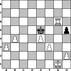 game notation in PGN-format [Event "3. Norderstedter DENK MAL Open 2012"] [Site "www.myChess.de"] [Date "2012.02.08"] [Round "1"] [White "BobbyF4"] [Black "Hobbykegler"] [ECO "B20"] [WhitemyELO "1531"] [BlackmyELO "1005"] [Result "1-0"] [TimeControl "10/2592000"] [WhiteDays "30"] [BlackDays "27"] [MyChessNo "79818"] 1. e4 c5 2. d4 cxd4 3. c3 dxc3 4. Bc4 Nc6 5. f4 d6 6. Nxc3 Nf6 7. Nf3 e5 8. O-O Be7 9. fxe5 Nxe5 10. Bb5+ Bd7 11. Qe2 Nxf3+ 12. gxf3 Bxb5 13. Nxb5 Qb6+ 14. Be3 Qa5 15. b4 Qa4 16. Nc7+ Kd7 17. Nxa8 Rxa8 18. Rfd1 Ke8 19. Qc4 g6 20. a3 Qd7 21. Rac1 Rc8 22. Qxc8+ Qxc8 23. Rxc8+ Kd7 24. Ra8 Ke6 25. Rxa7 Bd8 26. Rxb7 Ke5 27. Rxf7 h5 28. Bd4+ Ke6 29. Rxf6+ Bxf6 30. Bxf6 Kxf6 31. Rxd6+ Ke5 32. Rxg6 1-0 position notation in FEN-format 8/8/6R1/4k2p/1P2P3/P4P2/7P/6K1 - - - 0 32 Captured white pieces: ![]() ![]() ![]() ![]() ![]() ![]() ![]() ![]() ![]() ![]() ![]() ![]() ![]() ![]() ![]() Captured black pieces: ![]() ![]() ![]() ![]() ![]() ![]() ![]() ![]() ![]() ![]() ![]() ![]() ![]() ![]() ![]() Click on a captured piece in order to display the desired move!