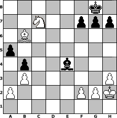 game notation in PGN-format [Event "MySchachOpen"] [Site "www.myChess.de"] [Date "2005.01.22"] [Round "1"] [White "Pinguin"] [Black "Falcor"] [ECO "C53"] [WhitemyELO "1502"] [BlackmyELO "1337"] [Result "1-0"] [TimeControl "10/2592000"] [WhiteDays "095"] [BlackDays "106"] [MyChessNo "9843"] 1. e4 e5 2. Nf3 Nc6 3. Bc4 Bc5 4. c3 d6 5. d4 Bg4 6. dxc5 dxc5 7. Nbd2 Nf6 8. O-O O-O 9. h3 Bh5 10. Qb3 Na5 11. Qb5 b6 12. Nxe5 Nxc4 13. Nexc4 Re8 14. Re1 a6 15. Qb3 b5 16. Ne3 Nxe4 17. Nxe4 Rxe4 18. Kf1 Qd6 19. Qd5 Qxd5 20. Nxd5 Rxe1+ 21. Kxe1 Re8+ 22. Kf1 Be2+ 23. Kg1 Bc4 24. Nxc7 Re1+ 25. Kh2 b4 26. cxb4 cxb4 27. b3 Bd3 28. Bb2 Rxa1 29. Bxa1 a5 30. Bd4 Be4 31. Bb6 1-0 position notation in FEN-format 6k1/2N2ppp/1B6/p7/1p2b3/1P5P/P4PPK/8 - - - 3 31 Captured white pieces: Captured black pieces: Click on a captured piece in order to display the desired move!