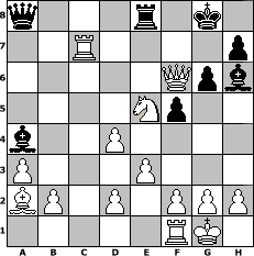 game notation in PGN-format [Event "Mit freude am Spiel 3"] [Site "www.myChess.de"] [Date "2021.09.09"] [Round "1"] [White "Rotstift10"] [Black "Hobbykegler"] [ECO "D02"] [WhitemyELO "1577"] [BlackmyELO "1024"] [Result "1-0"] [TimeControl "10/1728000"] [WhiteDays "20"] [BlackDays "13"] [MyChessNo "122929"] 1. d4 d5 2. Nf3 Nc6 3. Bf4 b6 4. e3 Nf6 5. Nc3 Bd7 6. Nb5 Rc8 7. c4 dxc4 8. Bxc4 Ne4 9. O-O a6 10. Nxc7+ Rxc7 11. Bxc7 Qxc7 12. Bxa6 Nb4 13. Bd3 e6 14. Bxe4 f5 15. Rc1 Qd6 16. Bb1 g6 17. a3 Nd5 18. Qb3 Nf6 19. Ne5 Bh6 20. Nc4 Qd5 21. Qxb6 O-O 22. Ne5 Ba4 23. Rc5 Qa8 24. Qxe6+ Kh8 25. Rc7 Re8 26. Qxf6+ Kg8 27. Ba2+ 1-0 position notation in FEN-format q3r1k1/2R4p/5Qpb/4Np2/b2P4/P3P3/BP1P1PPP/5RK1 - - - 2 27 Captured white pieces: ![]() ![]() ![]() ![]() ![]() ![]() ![]() ![]() ![]() ![]() ![]() ![]() ![]() ![]() ![]() Captured black pieces: ![]() ![]() ![]() ![]() ![]() ![]() ![]() ![]() ![]() ![]() ![]() ![]() ![]() ![]() ![]() Click on a captured piece in order to display the desired move!