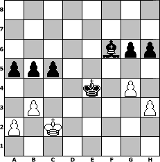 game notation in PGN-format [Event "Ostdeutschland"] [Site "www.myChess.de"] [Date "2008.08.12"] [Round "1"] [White "neve"] [Black "thw"] [ECO "A22"] [WhitemyELO "1466"] [BlackmyELO "1584"] [Result "0-1"] [TimeControl "10/2592000"] [WhiteDays "150"] [BlackDays "150"] [MyChessNo "47115"] 1. c4 e5 2. Nc3 Nf6 3. Nf3 Nc6 4. g3 d6 5. Bg2 Be6 6. b3 Qd7 7. d4 exd4 8. Nxd4 Nxd4 9. Qxd4 c6 10. e4 Be7 11. Bb2 O-O 12. Rd1 a6 13. O-O Bh3 14. e5 Bxg2 15. Kxg2 Ne8 16. Ne4 Rd8 17. c5 d5 18. Nc3 f6 19. Rfe1 fxe5 20. Qxe5 Bxc5 21. Rd2 Nf6 22. Qg5 Ng4 23. Nd1 Rf7 24. f3 Nf6 25. Rde2 h6 26. Qg6 d4 27. Nf2 Nd5 28. Ne4 Ne3+ 29. Kh1 Bb4 30. Rc1 Rxf3 31. Rxe3 dxe3 32. Nf6+ Rxf6 33. Bxf6 e2 34. Bxd8 Qd1+ 35. Rxd1 exd1=Q+ 36. Kg2 Qxd8 37. Qc2 Qd2+ 38. Qxd2 Bxd2 39. Kf3 Kf7 40. Ke4 Ke6 41. g4 Bc3 42. h3 b5 43. Kd3 Bf6 44. Ke4 g6 45. Kd3 Kd5 46. Ke3 c5 47. Kd3 a5 48. Kc2 Ke4 0-1 position notation in FEN-format 8/8/5bpp/ppp5/4k1P1/1P5P/P1K5/8 - - - 2 49 Captured white pieces: ![]() ![]() ![]() ![]() ![]() ![]() ![]() ![]() ![]() ![]() ![]() ![]() ![]() ![]() ![]() Captured black pieces: ![]() ![]() ![]() ![]() ![]() ![]() ![]() ![]() ![]() ![]() ![]() ![]() ![]() ![]() ![]() Click on a captured piece in order to display the desired move!