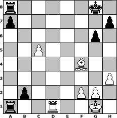 game notation in PGN-format [Event "3. gro"] [Site "www.myChess.de"] [Date "2006.09.17"] [Round "2"] [Board "4"] [White "Whiskey40"] [Black "Seneca"] [ECO "C00"] [WhitemyELO "1447"] [BlackmyELO "1715"] [Result "0-1"] [TimeControl "10/2592000"] [WhiteDays "28"] [BlackDays "30"] [MyChessNo "28695"] 1. e4 e6 2. Nf3 d5 3. exd5 exd5 4. d4 Nf6 5. c4 dxc4 6. Bxc4 Bg4 7. O-O Be7 8. Bxf7+ Kxf7 9. Ne5+ Kf8 10. Nxg4 Nc6 11. Nxf6 Bxf6 12. d5 Ne7 13. Nc3 Bxc3 14. bxc3 Qxd5 15. Qxd5 Nxd5 16. Bb2 Kf7 17. Rad1 c6 18. c4 Nb6 19. Rd4 Rhe8 20. Rg4 g6 21. h3 Re2 22. Rf4+ Kg8 23. c5 Nd5 24. Bc1 Nxf4 25. Bxf4 Rxa2 26. Re1 b5 27. Re6 b4 28. Rxc6 b3 29. Rd6 b2 30. Rd1 Ra1 0-1 position notation in FEN-format r5k1/p6p/6p1/2P5/5B2/7P/1p3PP1/r2R2K1 - - - 2 31 Captured white pieces: Captured black pieces: Click on a captured piece in order to display the desired move!