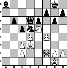 game notation in PGN-format [Event "Fruehlingsgefuehle"] [Site "www.myChess.de"] [Date "2007.03.30"] [Round "2"] [White "GIM1961"] [Black "kischok46"] [ECO "B00"] [WhitemyELO "1990"] [BlackmyELO "1898"] [Result "1/2-1/2"] [TimeControl "10/864000"] [WhiteDays "19"] [BlackDays "30"] [MyChessNo "33879"] 1. e4 b6 2. d4 Bb7 3. Nc3 e6 4. Nf3 Bb4 5. Bd3 Nf6 6. Qe2 d5 7. exd5 Nxd5 8. Bd2 Nxc3 9. bxc3 Bd6 10. O-O Nd7 11. Bg5 Be7 12. Bxe7 Qxe7 13. Ne5 O-O 14. f4 Rad8 15. a4 Nf6 16. a5 c5 17. axb6 axb6 18. Qe3 g6 19. Ra7 Ra8 20. Rfa1 Rxa7 21. Rxa7 Ra8 22. Rxa8+ Bxa8 23. Qe1 Qd6 24. Qf2 Nd5 1/2-1/2 position notation in FEN-format b5k1/5p1p/1p1qp1p1/2pnN3/3P1P2/2PB4/2P2QPP/6K1 - - - 4 25 Captured white pieces: Captured black pieces: Click on a captured piece in order to display the desired move!