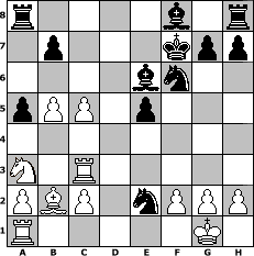 game notation in PGN-format [Event "4. Wikingermeisterschaft"] [Site "www.myChess.de"] [Date "2008.04.07"] [Round "1"] [White "Iceage"] [Black "Grubengeist"] [ECO "B07"] [WhitemyELO "1533"] [BlackmyELO "1976"] [Result "0-1"] [TimeControl "10/2592000"] [WhiteDays "26"] [BlackDays "30"] [MyChessNo "44143"] 1. e4 d6 2. Nf3 Nf6 3. e5 dxe5 4. Nxe5 Nbd7 5. Nxf7 Kxf7 6. Bc4+ e6 7. d4 c5 8. O-O Nb6 9. dxc5 Qxd1 10. Rxd1 Nxc4 11. Rd4 Ne5 12. b4 Nc6 13. Rc4 e5 14. Bb2 Be6 15. Rc3 a5 16. b5 Nd4 17. Na3 Ne2+ 0-1 position notation in FEN-format r4b1r/1p3kpp/4bn2/pPP1p3/8/N1R5/PBP1nPPP/R5K1 - - - 3 18 Captured white pieces: Captured black pieces: Click on a captured piece in order to display the desired move!