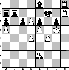 game notation in PGN-format [Event "2.No-Engine-Schachturnier"] [Site "www.myChess.de"] [Date "2013.08.15"] [Round "1"] [White "Steffi"] [Black "faustballer"] [ECO "D20"] [WhitemyELO "1508"] [BlackmyELO "1543"] [Result "1-0"] [TimeControl "10/1728000"] [WhiteDays "20"] [BlackDays "20"] [MyChessNo "89772"] 1. d4 d5 2. c4 dxc4 3. e4 e6 4. Bxc4 a6 5. Nc3 c6 6. a4 Bb4 7. Nf3 Nf6 8. Bg5 h6 9. Bxf6 Qxf6 10. e5 Qd8 11. O-O Bxc3 12. bxc3 Nd7 13. Qc2 Nb6 14. Bd3 Nd5 15. g3 Bd7 16. Nd2 b5 17. Ne4 O-O 18. Nd6 b4 19. c4 Nc3 20. a5 Qc7 21. c5 Nb5 22. Qb2 Nxd6 23. cxd6 Qb7 24. f4 f6 25. Qg2 f5 26. g4 Qa7 27. Qb2 fxg4 28. Qxb4 h5 29. Bg6 h4 30. Bh5 g3 31. hxg3 hxg3 32. Qc5 Kh7 33. Kg2 g6 34. Be2 Rfb8 35. Rh1+ Kg7 36. Kxg3 Rb3+ 37. Kg4 Rbb8 38. Kg5 Rb2 39. Qxa7 Rxa7 40. Rh2 Be8 41. Rah1 Rbb7 42. Rh7+ Kg8 43. Rh8+ Kf7 44. R1h7# 1-0 position notation in FEN-format 4b2R/rr3k1R/p1pPp1p1/P3P1K1/3P1P2/8/4B3/8 - - - 9 44 Captured white pieces: Captured black pieces: Click on a captured piece in order to display the desired move!