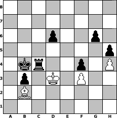 game notation in PGN-format [Event "Die Weinlese 2o2o"] [Site "www.myChess.de"] [Date "2020.08.30"] [Round "1"] [White "beowulf"] [Black "UPS"] [ECO "A28"] [WhitemyELO "1406"] [BlackmyELO "1687"] [Result "0-1"] [TimeControl "10/2592000"] [WhiteDays "150"] [BlackDays "135"] [MyChessNo "119225"] 1. c4 e5 2. Nc3 Nc6 3. Nf3 Nf6 4. e4 Bb4 5. a3 Bxc3 6. bxc3 d6 7. d4 Bg4 8. Qc2 Bxf3 9. gxf3 exd4 10. cxd4 Nxd4 11. Qd3 Nc6 12. Bg5 Ne5 13. Qc3 h6 14. Bh4 Qe7 15. Be2 Nxe4 16. Bxe7 Nxc3 17. Bh4 Nxe2 18. Kxe2 Nxc4 19. Kd3 Ne5+ 20. Ke4 f6 21. f4 Nc6 22. Rhe1 Ne7 23. Kf3 Kd7 24. Kg2 Rhe8 25. f3 Ng6 26. Bg3 Rxe1 27. Rxe1 f5 28. h4 h5 29. Kh3 c5 30. Bf2 Nxf4+ 31. Kg3 Nd3 32. Re2 b5 33. Bg1 a5 34. Rd2 c4 35. Bd4 f4+ 36. Kg2 g6 37. Kf1 b4 38. a4 Re8 39. Bb6 Re1+ 40. Kg2 b3 41. Bxa5 Ra1 42. Bc3 Rxa4 43. Kf1 Kc6 44. Ke2 Kc5 45. Rxd3 cxd3+ 46. Kxd3 Rc4 47. Bb2 Kb4 0-1 position notation in FEN-format 8/8/3p2p1/7p/1kr2p1P/1p1K1P2/1B6/8 - - - 3 48 Captured white pieces: Captured black pieces: Click on a captured piece in order to display the desired move!