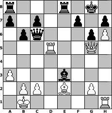 game notation in PGN-format [Event "Schachkings Miniturnier"] [Site "www.myChess.de"] [Date "2010.10.10"] [Round "1"] [White "Knight"] [Black "Seneca"] [ECO "D00"] [WhitemyELO "1171"] [BlackmyELO "1488"] [Result "0-1"] [TimeControl "10/2592000"] [WhiteDays "30"] [BlackDays "27"] [MyChessNo "68873"] 1. d4 d5 2. e4 dxe4 3. Nc3 Nf6 4. f3 exf3 5. Qxf3 e6 6. Be3 Bb4 7. Nge2 O-O 8. O-O-O Nc6 9. a3 Bd6 10. d5 Ne5 11. Qf2 b6 12. dxe6 Bxe6 13. Bg5 Ned7 14. h4 Qc8 15. h5 Bg4 16. Bxf6 Nxf6 17. h6 Bc5 18. Qe1 g6 19. Kb1 Re8 20. Qd2 Qb7 21. Qg5 Qc6 22. Nd5 Nxd5 23. Rxd5 Bxe2 24. Bxe2 Be3 0-1 position notation in FEN-format r3r1k1/p1p2p1p/1pq3pP/3R2Q1/8/P3b3/1PP1B1P1/1K5R - - - 1 25 Captured white pieces: Captured black pieces: Click on a captured piece in order to display the desired move!