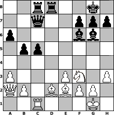 game notation in PGN-format [Event "Internetmeisterschaft Sfr. Heimersheim 2008"] [Site "www.myChess.de"] [Date "2008.03.05"] [Round "1"] [White "paula"] [Black "Ralphi@"] [ECO "D04"] [WhitemyELO "1718"] [BlackmyELO "1500"] [Result "0-1"] [TimeControl "10/2592000"] [WhiteDays "75"] [BlackDays "87"] [MyChessNo "43127"] 1. d4 d5 2. Nf3 Nf6 3. e3 Bg4 4. Be2 e6 5. O-O Nbd7 6. c4 dxc4 7. Bxc4 Be7 8. Nc3 O-O 9. a3 c5 10. Be2 Rc8 11. Qa4 a6 12. h3 Bh5 13. Rd1 Qc7 14. d5 exd5 15. Nxd5 Nxd5 16. Rxd5 Nb6 17. Qd1 Nxd5 18. Qxd5 Bg6 19. Bd2 Rfd8 20. Qa2 Bf6 21. Rc1 b5 0-1 position notation in FEN-format 2rr2k1/2q2ppp/p4bb1/1pp5/8/P3PN1P/QP1BBPP1/2R3K1 - - - 0 22 Captured white pieces: ![]() ![]() ![]() ![]() ![]() ![]() ![]() ![]() ![]() ![]() ![]() ![]() ![]() ![]() ![]() Captured black pieces: ![]() ![]() ![]() ![]() ![]() ![]() ![]() ![]() ![]() ![]() ![]() ![]() ![]() ![]() ![]() Click on a captured piece in order to display the desired move!