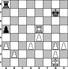 game notation in PGN-format [Event "Schach dem Osterhasen IV"] [Site "www.myChess.de"] [Date "2015.03.29"] [Round "1"] [White "Andylein1989"] [Black "faustballer"] [ECO "C41"] [WhitemyELO "1499"] [BlackmyELO "1498"] [Result "1-0"] [TimeControl "10/2592000"] [WhiteDays "098"] [BlackDays "120"] [MyChessNo "98715"] 1. e4 e5 2. Nf3 d6 3. Bc4 h6 4. O-O Nf6 5. d3 Bg4 6. Nbd2 a5 7. Re1 b5 8. Bxb5+ c6 9. Ba4 Qc7 10. h3 Bh5 11. Nf1 Be7 12. Ng3 O-O 13. Nxh5 Nxh5 14. Nxe5 dxe5 15. Qxh5 Nd7 16. Bb3 Nf6 17. Qf5 Qd6 18. a3 g6 19. Qxg6+ Kh8 20. Bxf7 Ng8 21. Qxd6 Bxd6 22. Bxg8 Rxg8 23. Bxh6 Rg6 24. Bd2 Be7 25. Re2 Kg7 26. Bc3 Bf6 27. Re3 Rh8 28. Rg3 Rxg3 29. fxg3 Ra8 30. Rf1 c5 31. Rf5 c4 32. Bxe5 Bxe5 33. Rxe5 cxd3 34. cxd3 1-0 position notation in FEN-format r7/6k1/8/p3R3/4P3/P2P2PP/1P4P1/6K1 - - - 0 34 Captured white pieces: Captured black pieces: Click on a captured piece in order to display the desired move!