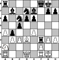 game notation in PGN-format [Event "Adevnt Advent "] [Site "www.myChess.de"] [Date "2018.12.04"] [Round "1"] [White "MiFie"] [Black "Robert"] [ECO "B23"] [WhitemyELO "1102"] [BlackmyELO "1574"] [Result "0-1"] [TimeControl "10/2592000"] [WhiteDays "60"] [BlackDays "19"] [MyChessNo "113650"] 1. e4 c5 2. Nc3 a6 3. Nf3 d6 4. Bc4 e6 5. O-O b5 6. Be2 Nc6 7. d3 Be7 8. Bf4 Nf6 9. h3 Bb7 10. a3 O-O 11. a4 b4 12. Na2 Nd7 13. b3 f5 14. c3 fxe4 15. dxe4 Rxf4 16. Bd3 Qf8 17. g3 Rxf3 0-1 position notation in FEN-format r4qk1/1b1nb1pp/p1npp3/2p5/Pp2P3/1PPB1rPP/N4P2/R2Q1RK1 - - - 0 18 Captured white pieces: Captured black pieces: Click on a captured piece in order to display the desired move!