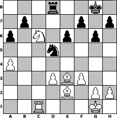 game notation in PGN-format [Event "In diesem Sommer gehts noch mal heiss her"] [Site "www.myChess.de"] [Date "2024.07.20"] [Round "1"] [White "Ziegert"] [Black "kalle"] [ECO "B70"] [WhitemyELO "2042"] [BlackmyELO "1673"] [Result "1-0"] [TimeControl "10/2592000"] [WhiteDays "26"] [BlackDays "83"] [MyChessNo "132131"] 1. e4 c5 2. Nf3 d6 3. d4 cxd4 4. Nxd4 Nf6 5. Nc3 g6 6. Be2 Bg7 7. O-O a6 8. Be3 O-O 9. Qd2 Bd7 10. f3 Nc6 11. a4 Ne8 12. Nd5 e6 13. Nxc6 Bxc6 14. Nb6 Rb8 15. Rad1 Nc7 16. Qxd6 Bxb2 17. Qc5 Qf6 18. Rd3 Rbd8 19. Nc4 Rxd3 20. cxd3 Bc3 21. Rc1 Rd8 22. e5 Bxe5 23. Qxe5 Qxe5 24. Nxe5 Nd5 25. Nxc6 1-0 position notation in FEN-format 3r2k1/1p3p1p/p1N1p1p1/3n4/P7/3PBP2/4B1PP/2R3K1 - - - 0 25 Captured white pieces: Captured black pieces: Click on a captured piece in order to display the desired move!