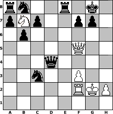 game notation in PGN-format [Event "Maischach"] [Site "www.myChess.de"] [Date "2014.04.26"] [Round "2"] [White "MiFie"] [Black "lotchi"] [ECO "D00"] [WhitemyELO "1054"] [BlackmyELO "1345"] [Result "0-1"] [TimeControl "10/2592000"] [WhiteDays "76"] [BlackDays "82"] [MyChessNo "94120"] 1. d4 d5 2. e4 e5 3. Nf3 dxe4 4. Nxe5 Nf6 5. Bg5 Be7 6. Bc4 Be6 7. Nc3 Bxc4 8. Nxc4 h6 9. O-O hxg5 10. f3 exf3 11. gxf3 O-O 12. Na5 Qc8 13. Qe1 Bb4 14. Nb3 Re8 15. Qd2 Bxc3 16. bxc3 Qd8 17. Qxg5 Nd5 18. Qf5 Nxc3 19. Rae1 Nxa2 20. Nc5 b6 21. Nb7 Qxd4+ 22. Rf2 Rxe1+ 23. Kg2 Re8 24. c3 Nxc3 0-1 position notation in FEN-format rn2r1k1/pNp2pp1/1p6/5Q2/3q4/2n2P2/5RKP/8 - - - 0 25 Captured white pieces: ![]() ![]() ![]() ![]() ![]() ![]() ![]() ![]() ![]() ![]() ![]() ![]() ![]() ![]() ![]() Captured black pieces: ![]() ![]() ![]() ![]() ![]() ![]() ![]() ![]() ![]() ![]() ![]() ![]() ![]() ![]() ![]() Click on a captured piece in order to display the desired move!