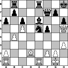 game notation in PGN-format [Event "Es wird bald Sommer"] [Site "www.myChess.de"] [Date "2015.05.12"] [Round "1"] [White "reisinger"] [Black "SEO1957"] [ECO "D10"] [WhitemyELO "1534"] [BlackmyELO "1553"] [Result "0-1"] [TimeControl "10/2592000"] [WhiteDays "30"] [BlackDays "30"] [MyChessNo "99212"] 1. d4 d5 2. c4 c6 3. e3 Nf6 4. Nc3 e6 5. Qc2 Nbd7 6. c5 Be7 7. Bd3 O-O 8. Nf3 h6 9. Bd2 a6 10. Ne2 Rb8 11. h3 Kh8 12. b4 Ng8 13. e4 dxe4 14. Bxe4 Ngf6 15. O-O Nxe4 16. Qxe4 f5 17. Qd3 Bf6 18. Nf4 Qe8 19. Rfe1 Qf7 20. Nxe6 Re8 21. Qc4 Nf8 22. Ne5 Bxe5 23. dxe5 Bxe6 24. Qh4 Ng6 25. Qh5 Nxe5 0-1 position notation in FEN-format 1r2r2k/1p3qp1/p1p1b2p/2P1np1Q/1P6/7P/P2B1PP1/R3R1K1 - - - 0 26 Captured white pieces: Captured black pieces: Click on a captured piece in order to display the desired move!