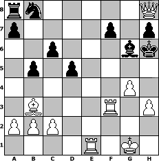 game notation in PGN-format [Event "Zur Sommersonnenwende"] [Site "www.myChess.de"] [Date "2016.06.23"] [Round "1"] [White "borsti"] [Black "Haneken"] [ECO "C41"] [WhitemyELO "1217"] [BlackmyELO "1122"] [Result "1-0"] [TimeControl "10/2592000"] [WhiteDays "90"] [BlackDays "90"] [MyChessNo "103985"] 1. e4 e5 2. Nf3 d6 3. Bb5+ c6 4. Ba4 Qa5 5. Bb3 Nf6 6. Nc3 Bg4 7. h3 Bh5 8. d4 Nxe4 9. O-O b5 10. Nxe4 d5 11. Nc5 Bxc5 12. dxc5 Qd8 13. g4 e4 14. Nd4 Qf6 15. Be3 Bg6 16. f4 exf3 17. Rxf3 Qe5 18. Qe2 Qe7 19. Re1 Qxc5 20. Ne6 Qe7 21. Nxg7+ Kf8 22. Bh6 Qh4 23. Nf5+ Qxh6 24. Nxh6 Kg7 25. Qe5+ Kxh6 26. Qxh8 1-0 position notation in FEN-format rn5Q/p4p1p/2p3bk/1p1p4/6P1/1B3R1P/PPP5/4R1K1 - - - 0 26 Captured white pieces: Captured black pieces: Click on a captured piece in order to display the desired move!