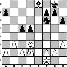 game notation in PGN-format [Event "Die Weinlese"] [Site "www.myChess.de"] [Date "2016.09.01"] [Round "1"] [White "Grubengeist"] [Black "jeremyt"] [ECO "C45"] [WhitemyELO "1922"] [BlackmyELO "2067"] [Result "1/2-1/2"] [TimeControl "10/1728000"] [WhiteDays "40"] [BlackDays "49"] [MyChessNo "104674"] 1. e4 e5 2. Nf3 Nc6 3. d4 exd4 4. Nxd4 Nf6 5. Nc3 Bb4 6. Nxc6 bxc6 7. Bd3 O-O 8. O-O d5 9. exd5 cxd5 10. Bg5 c6 11. Qf3 Re8 12. Rae1 Be6 13. h3 h6 14. Bf4 Bd6 15. Bxd6 Qxd6 16. Re2 Rab8 17. b3 Bd7 18. Rfe1 Rxe2 19. Qxe2 Qb4 20. Qd2 c5 21. Nb1 Qxd2 22. Nxd2 Re8 23. Rxe8+ Bxe8 24. Kf1 1/2-1/2 position notation in FEN-format 4b1k1/p4pp1/5n1p/2pp4/8/1P1B3P/P1PN1PP1/5K2 - - - 1 24 Captured white pieces: Captured black pieces: Click on a captured piece in order to display the desired move!