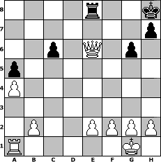 game notation in PGN-format [Event "F"] [Site "www.myChess.de"] [Date "2008.07.24"] [Round "1"] [White "Greenhorn"] [Black "ujack1961"] [ECO "C54"] [WhitemyELO "1621"] [BlackmyELO "1663"] [Result "1/2-1/2"] [TimeControl "10/1728000"] [WhiteDays "17"] [BlackDays "20"] [MyChessNo "46495"] 1. e4 e5 2. Nf3 Nc6 3. Bc4 Bc5 4. c3 Nf6 5. d4 exd4 6. cxd4 Bb4+ 7. Bd2 Bxd2+ 8. Nbxd2 d5 9. exd5 Nxd5 10. Qb3 Nce7 11. O-O c6 12. Ne4 O-O 13. a4 a5 14. Rfe1 Qc7 15. Qc2 Bf5 16. Bxd5 Nxd5 17. Nf6+ Nxf6 18. Qxf5 Rfe8 19. Qc2 Re6 20. Re5 Rxe5 21. dxe5 Nd7 22. Ng5 g6 23. e6 fxe6 24. Nxe6 Qe5 25. Qb3 Kh8 26. Qxb7 Re8 27. Qxd7 Qxe6 28. Qxe6 1/2-1/2 position notation in FEN-format 4r2k/7p/2p1Q1p1/p7/P7/8/1P2PPPP/R5K1 - - - 0 28 Captured white pieces: ![]() ![]() ![]() ![]() ![]() ![]() ![]() ![]() ![]() ![]() ![]() ![]() ![]() ![]() ![]() Captured black pieces: ![]() ![]() ![]() ![]() ![]() ![]() ![]() ![]() ![]() ![]() ![]() ![]() ![]() ![]() ![]() Click on a captured piece in order to display the desired move!