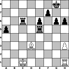 game notation in PGN-format [Event "wie w"] [Site "www.myChess.de"] [Date "2013.11.16"] [Round "1"] [White "lotchi"] [Black "Joschi"] [ECO "B17"] [WhitemyELO "1175"] [BlackmyELO "1574"] [Result "0-1"] [TimeControl "10/1728000"] [WhiteDays "18"] [BlackDays "20"] [MyChessNo "91139"] 1. e4 c6 2. d4 d5 3. Nc3 dxe4 4. Nxe4 Nd7 5. c4 Ngf6 6. Nxf6+ Nxf6 7. Bg5 e6 8. a3 Be7 9. Nf3 h6 10. Bxf6 Bxf6 11. Qd3 O-O 12. c5 b6 13. Qe4 Bb7 14. Bd3 g6 15. O-O-O bxc5 16. dxc5 Qa5 17. Qb4 Qxb4 18. axb4 a5 19. b5 cxb5 20. Bxb5 Bxf3 21. gxf3 Rab8 22. Ba6 Bxb2+ 23. Kc2 Be5 24. Kd3 Rb3+ 25. Ke2 Ra8 26. Bd3 Rc8 27. Rc1 Bd4 28. c6 Rb2+ 29. Kf1 Rxf2+ 30. Ke1 Rxf3 31. Ke2 Re3+ 32. Kd2 Re5 33. h3 Be3+ 34. Kd1 Bxc1 35. Kxc1 Rxc6+ 0-1 position notation in FEN-format 6k1/5p2/2r1p1pp/p3r3/8/3B3P/8/2K4R - - - 0 36 Captured white pieces: Captured black pieces: Click on a captured piece in order to display the desired move!