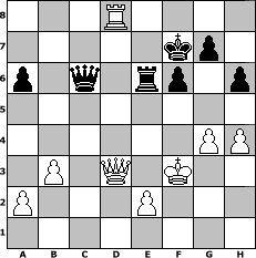 game notation in PGN-format [Event "Faires Schach"] [Site "www.myChess.de"] [Date "2007.03.25"] [Round "1"] [White "Andreas"] [Black "Caligula"] [ECO "B00"] [WhitemyELO "1619"] [BlackmyELO "1671"] [Result "1/2-1/2"] [TimeControl "10/3456000"] [WhiteDays "196"] [BlackDays "197"] [MyChessNo "33707"] 1. e4 Nc6 2. d4 d5 3. e5 Bf5 4. Bb5 a6 5. Bxc6+ bxc6 6. Nf3 e6 7. O-O Ne7 8. Bg5 h6 9. Be3 Qb8 10. b3 Qb7 11. Nc3 Bg4 12. h3 Bh5 13. Na4 Nf5 14. g4 Nxe3 15. fxe3 Bg6 16. Nh4 Be4 17. Nc3 Be7 18. Nxe4 dxe4 19. Ng2 c5 20. Nf4 O-O 21. c3 Rad8 22. Qc2 cxd4 23. exd4 c5 24. Rad1 cxd4 25. cxd4 Rc8 26. Qg2 Rc3 27. d5 Bg5 28. Qxe4 Rd8 29. Qd4 Rc2 30. Rf2 Rxf2 31. Kxf2 Bxf4 32. Qxf4 exd5 33. h4 Qe7 34. Kg3 Qe6 35. Qf5 Qe7 36. Rd4 f6 37. e6 Rd6 38. Rxd5 Rxe6 39. Rd8+ Kf7 40. Qd5 Qc7+ 41. Kf3 Qc3+ 42. Qd3 Qc6+ 1/2-1/2 position notation in FEN-format 3R4/5kp1/p1q1rp1p/8/6PP/1P1Q1K2/P3P3/8 - - - 8 43 Captured white pieces: Captured black pieces: Click on a captured piece in order to display the desired move!