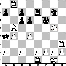game notation in PGN-format [Event "Wrixum - Open die VI."] [Site "www.myChess.de"] [Date "2009.10.20"] [Round "1"] [White "muetoe"] [Black "BobbyF4"] [ECO "C40"] [WhitemyELO "1900"] [BlackmyELO "1459"] [Result "1-0"] [TimeControl "10/2592000"] [WhiteDays "29"] [BlackDays "27"] [MyChessNo "60027"] 1. e4 e5 2. Nf3 f5 3. Nxe5 Nc6 4. d4 d6 5. Nxc6 bxc6 6. Bd3 Nf6 7. exf5 Nd5 8. Qh5+ g6 9. fxg6 Nf6 10. g7+ Nxh5 11. gxh8=Q Ng7 12. O-O Qf6 13. Re1+ Be6 14. Nd2 O-O-O 15. Nf3 Be7 16. Qxh7 Kb7 17. Bg5 Qf8 18. Rxe6 Bxg5 19. Nxg5 Rd7 20. Re1 Kb6 21. Re8 Qf6 22. Rb8+ Ka5 23. b4+ Ka4 24. Qh3 Re7 25. Bb5+ 1-0 position notation in FEN-format 1R6/p1p1r1n1/2pp1q2/1B4N1/kP1P4/7R/P1P1PPPP/4R1K1 - - - 4 25 Captured white pieces: ![]() ![]() ![]() ![]() ![]() ![]() ![]() ![]() ![]() ![]() ![]() ![]() ![]() ![]() ![]() Captured black pieces: ![]() ![]() ![]() ![]() ![]() ![]() ![]() ![]() ![]() ![]() ![]() ![]() ![]() ![]() ![]() Click on a captured piece in order to display the desired move!