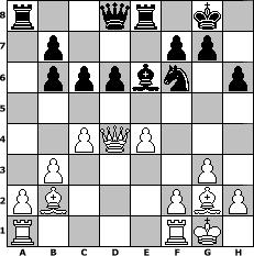 game notation in PGN-format [Event "!!!Turnier in den Sommer!!!"] [Site "www.myChess.de"] [Date "2011.03.02"] [Round "1"] [White "Holzhacker"] [Black "Andylein1989"] [ECO "C26"] [WhitemyELO "2065"] [BlackmyELO "1550"] [Result "1-0"] [TimeControl "10/1728000"] [WhiteDays "35"] [BlackDays "00"] [MyChessNo "72465"] 1. e4 e5 2. Nc3 Nf6 3. g3 Nc6 4. Bg2 Bc5 5. d3 d6 6. Na4 Bb6 7. Nxb6 axb6 8. Ne2 h6 9. d4 exd4 10. Nxd4 O-O 11. O-O Nxd4 12. Qxd4 Re8 13. b3 Be6 14. Bb2 c6 15. c4 1-0 position notation in FEN-format r2qr1k1/1p3pp1/1pppbn1p/8/2PQP3/1P4P1/PB3PBP/R4RK1 - - - 0 15 Captured white pieces: ![]() ![]() ![]() ![]() ![]() ![]() ![]() ![]() ![]() ![]() ![]() ![]() ![]() ![]() ![]() Captured black pieces: ![]() ![]() ![]() ![]() ![]() ![]() ![]() ![]() ![]() ![]() ![]() ![]() ![]() ![]() ![]() Click on a captured piece in order to display the desired move!