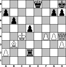game notation in PGN-format [Event "Vor dem Urlaub noch ein schnelles Turnier!"] [Site "www.myChess.de"] [Date "2012.06.16"] [Round "1"] [White "BobbyF4"] [Black "Tigerle"] [ECO "B20"] [WhitemyELO "1512"] [BlackmyELO "1521"] [Result "0-1"] [TimeControl "10/864000"] [WhiteDays "00"] [BlackDays "09"] [MyChessNo "82271"] 1. e4 c5 2. d4 cxd4 3. c3 dxc3 4. Nxc3 Nc6 5. Bc4 e6 6. f4 Bb4 7. Nf3 Nf6 8. O-O O-O 9. e5 Bxc3 10. bxc3 Ne4 11. Qc2 f5 12. Be3 b6 13. Rad1 Qe7 14. Nd4 Bb7 15. Nb5 Na5 16. Bb3 Rac8 17. c4 Nc6 18. Nd6 Nxd6 19. Rxd6 Rc7 20. Bf2 Rfc8 21. Rfd1 Na5 22. Qe2 Ba6 23. Ba4 Bxc4 24. Qe1 Bd5 25. h3 Nc4 26. R6xd5 exd5 27. Rxd5 Nb2 28. Bb3 Kh8 29. Kh2 Rc1 30. Qe2 Nc4 31. Qd3 Rc7 32. Rd6 Qe8 33. Qxf5 Nxd6 34. exd6 R7c5 35. Bxc5 Rxc5 36. Qg4 Qf8 37. Qh4 Rc6 38. g3 Rxd6 39. Kg2 Qa8+ 40. Kf2 Rd2+ 41. Ke3 Rg2 42. g4 Qe8+ 43. Kd4 Rd2+ 44. Kc4 d5+ 0-1 position notation in FEN-format 4q2k/p5pp/1p6/3p4/2K2PPQ/1B5P/P2r4/8 - - - 0 45 Captured white pieces: Captured black pieces: Click on a captured piece in order to display the desired move!