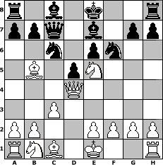game notation in PGN-format [Event "STHLM"] [Site "www.myChess.de"] [Date "2010.03.25"] [Round "2"] [White "Schmalte"] [Black "neve"] [ECO "C02"] [WhitemyELO "1393"] [BlackmyELO "1380"] [Result "0-1"] [TimeControl "10/1728000"] [WhiteDays "00"] [BlackDays "20"] [MyChessNo "64311"] 1. e4 e6 2. d4 d5 3. e5 c5 4. c3 Nc6 5. Nf3 f6 6. exf6 Nxf6 7. Bb5 cxd4 8. Qxd4 Be7 9. Ne5 Qc7 0-1 position notation in FEN-format r1b1k2r/ppq1b1pp/2n1pn2/1B1pN3/3Q4/2P5/PP2PPPP/RNB1K2R - KQkq - 3 10 Captured white pieces: Captured black pieces: Click on a captured piece in order to display the desired move!