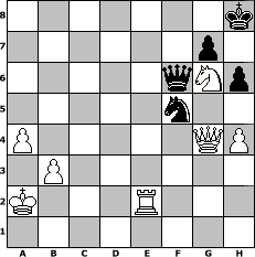 game notation in PGN-format [Event "Schach dem" Nikolaus""] [Site "www.myChess.de"] [Date "2009.11.28"] [Round "1"] [White "BobbyF4"] [Black "Winston"] [ECO "B20"] [WhitemyELO "1498"] [BlackmyELO "1399"] [Result "1-0"] [TimeControl "10/2592000"] [WhiteDays "166"] [BlackDays "210"] [MyChessNo "60983"] 1. e4 c5 2. d4 e6 3. Nf3 Nf6 4. e5 Nd5 5. c4 Nb6 6. d5 d6 7. Nc3 dxe5 8. Nxe5 Qf6 9. f4 Bd6 10. Ne4 Qe7 11. dxe6 Bxe5 12. exf7+ Qxf7 13. fxe5 O-O 14. Be2 Nc6 15. Rf1 Bf5 16. Nd6 Qe6 17. Bf4 Rad8 18. Qb3 Bg6 19. Nxb7 Rd4 20. Nxc5 Qe7 21. Qb5 Be8 22. Be3 Nxe5 23. Rxf8+ Kxf8 24. Qa5 Nbxc4 25. Qc3 Rh4 26. O-O-O Nxe3 27. Qxe3 Bg6 28. Rf1+ Kg8 29. Qb3+ Kh8 30. Qb8+ Be8 31. Ne6 Nd7 32. Qb3 Qd6 33. h3 h6 34. Bd3 Rh5 35. Nf4 Rc5+ 36. Kb1 Ne5 37. Bc2 Nc4 38. Rf2 Rc8 39. Qc3 Bf7 40. g3 Qb6 41. Nd3 Qb7 42. Nc1 Nd6 43. Qd3 Rxc2 44. Rxc2 Nb5 45. Ka1 a6 46. a4 Nc7 47. Rf2 Ne6 48. Qf5 Bg8 49. Qe5 Qc8 50. Qc3 Qe8 51. b3 Ng5 52. Re2 Qf8 53. h4 Nh7 54. Kb2 Qf7 55. Nd3 Nf6 56. Ne5 Qh5 57. Qd3 Bh7 58. Qxa6 Qf5 59. Qa8+ Ng8 60. Qe4 Qf6 61. Qf4 Bf5 62. g4 Bxg4 63. Qxg4 Ne7 64. Ka2 Nf5 65. Ng6+ 1-0 position notation in FEN-format 7k/6p1/5qNp/5n2/P5QP/1P6/K3R3/8 - - - 4 65 Captured white pieces: Captured black pieces: Click on a captured piece in order to display the desired move!