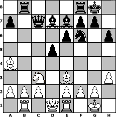 game notation in PGN-format [Event "!!!Turnier in den Sommer!!!"] [Site "www.myChess.de"] [Date "2011.03.02"] [Round "1"] [White "Andylein1989"] [Black "Baehr008"] [ECO "B41"] [WhitemyELO "1550"] [BlackmyELO "1947"] [Result "0-1"] [TimeControl "10/1728000"] [WhiteDays "00"] [BlackDays "25"] [MyChessNo "72487"] 1. e4 c5 2. Nf3 e6 3. d4 cxd4 4. Nxd4 Nf6 5. Nc3 Nc6 6. Bg5 d6 7. Bb5 Bd7 8. O-O Be7 9. h3 O-O 10. Nxc6 bxc6 11. Ba4 Qc7 12. Re1 Rab8 13. Rb1 h6 14. Be3 d5 15. exd5 cxd5 0-1 position notation in FEN-format 1r3rk1/p1qbbpp1/4pn1p/3p4/B7/2N1B2P/PPP1PPP1/1R1QR1K1 - - - 0 16 Captured white pieces: ![]() ![]() ![]() ![]() ![]() ![]() ![]() ![]() ![]() ![]() ![]() ![]() ![]() ![]() ![]() Captured black pieces: ![]() ![]() ![]() ![]() ![]() ![]() ![]() ![]() ![]() ![]() ![]() ![]() ![]() ![]() ![]() Click on a captured piece in order to display the desired move!