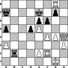 game notation in PGN-format [Event "4. Norderstedter DENK MAL Open 2013"] [Site "www.myChess.de"] [Date "2013.01.09"] [Round "1"] [White "martinus"] [Black "Tomino"] [ECO "B12"] [WhitemyELO "1702"] [BlackmyELO "1736"] [Result "1-0"] [TimeControl "10/2592000"] [WhiteDays "30"] [BlackDays "22"] [MyChessNo "86046"] 1. e4 c6 2. d4 d5 3. e5 c5 4. Nf3 Bg4 5. h3 Bxf3 6. Bb5+ Nc6 7. Qxf3 cxd4 8. O-O a6 9. Bxc6+ bxc6 10. Qd3 Qb6 11. c3 dxc3 12. Nxc3 e6 13. Be3 Qc7 14. f4 Ne7 15. Na4 Qa5 16. Qc2 Rc8 17. Rac1 Nf5 18. Bd2 Bb4 19. Bxb4 Qxb4 20. Rf2 O-O 21. Nc5 a5 22. g4 Ne7 23. a3 Qb6 24. Nd7 Qa7 25. Nxf8 Kxf8 26. Qxh7 Rb8 27. Qh8+ Ng8 28. Rxc6 Rxb2 29. Rc8+ Ke7 30. Qh4+ f6 31. Rxg8 1-0 position notation in FEN-format 6R1/q3k1p1/4pp2/p2pP3/5PPQ/P6P/1r2PR2/6K1 - - - 0 31 Captured white pieces: Captured black pieces: Click on a captured piece in order to display the desired move!