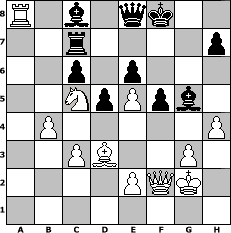 game notation in PGN-format [Event "Neujahrsturnier 2014"] [Site "www.myChess.de"] [Date "2014.01.01"] [Round "1"] [White "lmilde1 (adv.)"] [Black "Wernburger"] [ECO "B32"] [WhitemyELO "1804"] [BlackmyELO "1802"] [Result "1-0"] [TimeControl "10/3456000"] [WhiteDays "124"] [BlackDays "109"] [MyChessNo "91904"] 1. e4 c5 2. Nf3 Nc6 3. d4 cxd4 4. Nxd4 e6 5. Nc3 a6 6. Nxc6 bxc6 7. Bd3 Bb4 8. O-O Ne7 9. e5 Ng6 10. f4 O-O 11. Na4 d5 12. c3 Be7 13. Be3 Rb8 14. b4 a5 15. a3 axb4 16. axb4 f5 17. Nc5 Rf7 18. Qa4 Qc7 19. Qc2 Qd8 20. Nb3 Qe8 21. Qf2 Bh4 22. g3 Bd8 23. Kg2 Bb7 24. Bc5 Nf8 25. Ba7 Ra8 26. Bd4 Rxa1 27. Rxa1 Rc7 28. Bc5 g5 29. fxg5 Bxg5 30. Ra7 Rf7 31. Bxf8 Kxf8 32. Nc5 Bc8 33. Ra8 Rc7 34. h4 1-0 position notation in FEN-format R1b1qk2/2r4p/2p1p3/2NpPpb1/1P5P/2PB2P1/4PQK1/8 - - - 0 34 Captured white pieces: Captured black pieces: Click on a captured piece in order to display the desired move!