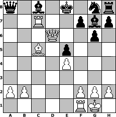 game notation in PGN-format [Event "Sommeranfang 2013"] [Site "www.myChess.de"] [Date "2013.06.21"] [Round "1"] [Board "3"] [White "Peterlie77 (C)"] [Black "Udraiv"] [ECO "B27"] [WhitemyELO "2018"] [BlackmyELO "1550"] [Result "1-0"] [TimeControl "10/2592000"] [WhiteDays "30"] [BlackDays "30"] [MyChessNo "88944"] 1. e4 c5 2. Nf3 g6 3. c3 Bg7 4. d4 cxd4 5. cxd4 Nc6 6. d5 Ne5 7. Nc3 a6 8. Bf4 d6 9. Be2 Qc7 10. O-O Nf6 11. Nxe5 dxe5 12. Be3 b5 13. Rc1 Qd6 14. Bxb5+ axb5 15. Nxb5 Qb8 16. Nc7+ Kf8 17. Nxa8 Qxa8 18. d6 exd6 19. Qxd6+ Ke8 20. Rc7 Ng8 21. Bc5 1-0 position notation in FEN-format q1b1k1nr/2R2pbp/3Q2p1/2B1p3/4P3/8/PP3PPP/5RK1 - - - 4 21 Captured white pieces: Captured black pieces: Click on a captured piece in order to display the desired move!