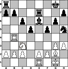 game notation in PGN-format [Event "!!!Turnier in den Sommer!!!"] [Site "www.myChess.de"] [Date "2011.03.02"] [Round "1"] [White "Schachfedi"] [Black "bjeu"] [ECO "A05"] [WhitemyELO "1774"] [BlackmyELO "2086"] [Result "0-1"] [TimeControl "10/1728000"] [WhiteDays "00"] [BlackDays "03"] [MyChessNo "72503"] 1. Nf3 Nf6 2. Nc3 d5 3. d4 c6 4. g3 g6 5. Bg2 Bg7 6. O-O O-O 7. Bf4 Nbd7 8. Re1 Qb6 9. Qd3 Re8 10. h3 Nh5 11. Be3 Qc7 12. Qd2 e5 13. dxe5 Nxe5 14. Nxe5 Qxe5 15. Rad1 f5 16. Bd4 Qxd4 17. Qxd4 Bxd4 18. Rxd4 Be6 19. Rb4 Re7 0-1 position notation in FEN-format r5k1/pp2r2p/2p1b1p1/3p1p1n/1R6/2N3PP/PPP1PPB1/4R1K1 - - - 3 20 Captured white pieces: ![]() ![]() ![]() ![]() ![]() ![]() ![]() ![]() ![]() ![]() ![]() ![]() ![]() ![]() ![]() Captured black pieces: ![]() ![]() ![]() ![]() ![]() ![]() ![]() ![]() ![]() ![]() ![]() ![]() ![]() ![]() ![]() Click on a captured piece in order to display the desired move!