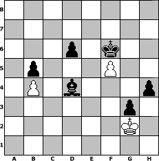 game notation in PGN-format [Event "Februar 2019"] [Site "www.myChess.de"] [Date "2019.02.12"] [Round "1"] [White "borsti"] [Black "Andylein1989"] [ECO "C77"] [WhitemyELO "1282"] [BlackmyELO "1615"] [Result "0-1"] [TimeControl "10/1728000"] [WhiteDays "098"] [BlackDays "100"] [MyChessNo "114362"] 1. e4 e5 2. Nf3 Nc6 3. Bb5 a6 4. Ba4 Nf6 5. d3 d6 6. Bg5 Bd7 7. Nc3 h6 8. Bxf6 Qxf6 9. Nd5 Qd8 10. c3 Ne7 11. Bxd7+ Qxd7 12. O-O Nxd5 13. exd5 Qb5 14. Qc2 Qxd5 15. b3 Be7 16. c4 Qc6 17. Rfe1 O-O-O 18. Re3 f5 19. d4 e4 20. Re1 Bg5 21. Rc3 exf3 22. Qxf5+ Kb8 23. Rxf3 Rde8 24. Kf1 Bd2 25. Re2 Ba5 26. Qf7 Rxe2 27. Kxe2 Qe8+ 28. Kd3 Qxf7 29. Rxf7 g5 30. a3 c6 31. h4 gxh4 32. Rf3 Rg8 33. g4 Rxg4 34. Rh3 Be1 35. f3 Rg3 36. Rxg3 hxg3 37. Ke2 Bf2 38. f4 h5 39. f5 Bxd4 40. Kf1 h4 41. Kg2 Kc7 42. b4 Kd7 43. a4 b5 44. cxb5 cxb5 45. axb5 axb5 46. Kf3 Ke7 47. Kg2 Kf6 0-1 position notation in FEN-format 8/8/3p1k2/1p3P2/1P1b3p/6p1/6K1/8 - - - 4 48 Captured white pieces: Captured black pieces: Click on a captured piece in order to display the desired move!