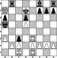 game notation in PGN-format [Event "Sweschnikow II"] [Site "www.myChess.de"] [Date "2012.04.28"] [Round "1"] [White "Sanji"] [Black "reisinger"] [ECO "B33"] [WhitemyELO "1627"] [BlackmyELO "1454"] [Result "1-0"] [TimeControl "10/1728000"] [WhiteDays "19"] [BlackDays "20"] [MyChessNo "81296"] 1. e4 c5 2. Nf3 Nc6 3. d4 cxd4 4. Nxd4 Nf6 5. Nc3 e5 6. Ndb5 d6 7. Nd5 Nxd5 8. exd5 Qa5+ 9. Nc3 Nd4 10. Be3 a6 11. Bxd4 exd4 12. Qxd4 b5 13. a3 Bf5 14. O-O-O Rb8 15. Bd3 Bxd3 16. Rxd3 b4 17. Re1+ Kd7 18. Re3 bxc3 19. Qa7+ 1-0 position notation in FEN-format 1r3b1r/Q2k1ppp/p2p4/q2P4/8/P1p1R3/1PP1PPPP/2K1R3 - - - 1 19 Captured white pieces: Captured black pieces: Click on a captured piece in order to display the desired move!
