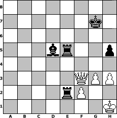game notation in PGN-format [Event "Mit Sizialisch in den Herbst!"] [Site "www.myChess.de"] [Date "2005.09.22"] [Round "1"] [White "Sanji"] [Black "MichaelKnopf"] [ECO "B20"] [WhitemyELO "1579"] [BlackmyELO "1530"] [Result "0-1"] [TimeControl "10/1728000"] [WhiteDays "20"] [BlackDays "20"] [MyChessNo "17733"] 1. e4 c5 2. d4 cxd4 3. c3 dxc3 4. Nxc3 e5 5. Nf3 Nc6 6. Bc4 a6 7. a4 h6 8. Qb3 d5 9. Bxd5 Qc7 10. Bxc6+ bxc6 11. O-O Nf6 12. Be3 Be7 13. Rac1 O-O 14. Nd5 Nxd5 15. exd5 Rb8 16. Qa2 c5 17. Rfd1 Bg4 18. Qc4 f5 19. d6+ Kh7 20. dxc7 Rbc8 21. Rd7 Bf6 22. Qxc5 f4 23. Bd2 Bxd7 24. Nxe5 Bxa4 25. Bxf4 g5 26. Bg3 h5 27. Nd7 Bxd7 28. Qd6 Bf5 29. Be5 Bxe5 30. Qe7+ Bg7 31. Qxg5 Bg6 32. Qe7 Kg8 33. Rc6 Rfe8 34. Qb4 Re4 35. Qb3+ Bf7 36. Qd1 Bxb2 37. Qd8+ Re8 38. Qg5+ Bg7 39. h3 Re1+ 40. Kh2 Re5 41. Qd8+ Re8 42. Qd7 a5 43. Rd6 Be5+ 44. g3 Bxd6 45. Qxd6 a4 46. Qb4 Rxc7 47. Qxa4 Re2 48. Qf4 Rce7 49. Qg5+ Kh7 50. Kh1 R7e5 51. Qf6 Be6 52. Qe7+ Kg6 53. Qe8+ Kg7 54. Qe7+ Bf7 55. Qa7 Kg8 56. Qa8+ Kg7 57. Qf3 Bd5 0-1 position notation in FEN-format 8/6k1/8/3br2p/8/5QPP/4rP2/7K - - - 21 58 Captured white pieces: Captured black pieces: Click on a captured piece in order to display the desired move!