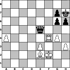 game notation in PGN-format [Event "Herbstturnier bis 1600"] [Site "www.myChess.de"] [Date "2025.10.14"] [Round "1"] [White "Campino1986"] [Black "Winston"] [ECO "D00"] [WhitemyELO "1558"] [BlackmyELO "1536"] [Result "1/2-1/2"] [TimeControl "10/2592000"] [WhiteDays "123"] [BlackDays "150"] [MyChessNo "133752"] 1. d4 d5 2. Bf4 Nc6 3. e3 a6 4. c3 h6 5. Nd2 Nf6 6. Ngf3 Bg4 7. Be2 e6 8. O-O Bh5 9. h3 Bg6 10. b3 Bd6 11. Bxd6 Qxd6 12. c4 b6 13. a3 O-O 14. b4 dxc4 15. Nxc4 Qd5 16. Nfe5 Nxe5 17. Nxe5 b5 18. Nxg6 fxg6 19. Bf3 Ne4 20. Rc1 Rf7 21. Rc5 Qb7 22. Re5 Raf8 23. Bxe4 c6 24. Rxe6 Rf6 25. Qb3 Qf7 26. d5 Rxf2 27. Bf3 Rxf1+ 28. Kxf1 cxd5 29. Qxd5 Kh7 30. Ke2 Qc7 31. Rxa6 Rd8 32. Rc6 Qe7 33. Qxb5 Qf7 34. a4 Qd7 35. Kf2 Qd2+ 36. Qe2 Qxb4 37. Rc4 Qa5 38. g4 Rd2 39. Rd4 Rxe2+ 40. Bxe2 Qe5 41. Rf4 1/2-1/2 position notation in FEN-format 8/6pk/6pp/4q3/P4RP1/4P2P/4BK2/8 - - - 2 41 Captured white pieces: Captured black pieces: Click on a captured piece in order to display the desired move!