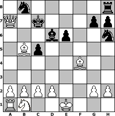 game notation in PGN-format [Event "friends 4"] [Site "www.myChess.de"] [Date "2007.07.20"] [Round "1"] [White "Shubaka"] [Black "Master1"] [ECO "D00"] [WhitemyELO "1500"] [BlackmyELO "1313"] [Result "1-0"] [TimeControl "10/864000"] [WhiteDays "10"] [BlackDays "10"] [MyChessNo "36578"] 1. d4 d5 2. e4 dxe4 3. f3 exf3 4. Nxf3 Bg4 5. Bd3 Bxf3 6. Qxf3 Qxd4 7. Qxb7 Qe5+ 8. Be2 e6 9. Qxa8 c6 10. Rf1 Qc7 11. Be3 c5 12. Bb5+ Kd8 13. Rxf7 Nh6 14. Rxc7 Kxc7 15. Bf4+ Bd6 16. Qxa7+ 1-0 position notation in FEN-format 1n5r/Q1k3pp/3bp2n/1Bp5/5B2/8/PPPP2PP/RN2K3 - Q - 0 16 Captured white pieces: Captured black pieces: Click on a captured piece in order to display the desired move!